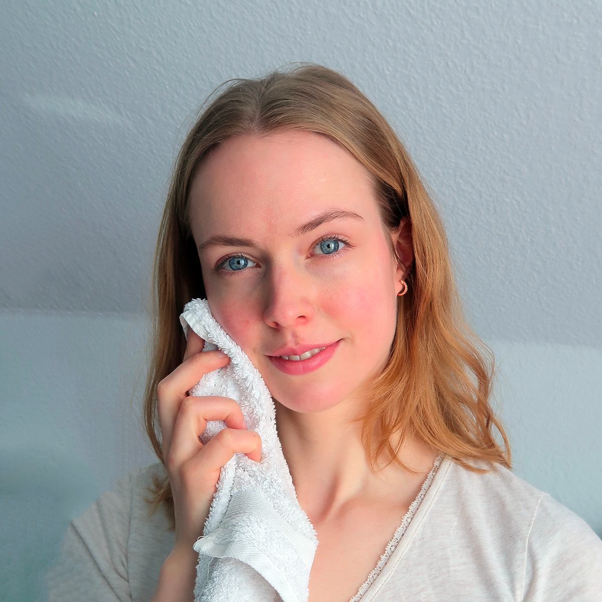 Mit feuchtem Pad oder lauwarmen Wasser abnehmen.